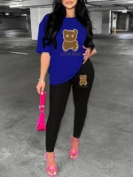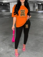 LOVER BEAR Print Two-Piece Set – Casual Loose Fit Women’s T-Shirt & Tight Bottomed Pants